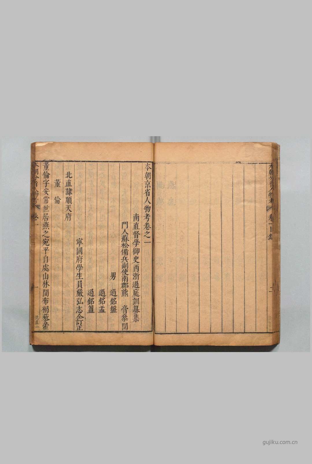通过数字化技术,古籍库让《本朝京省人物考 115卷 过庭训 明天启2年》等珍贵文献得以跨越时空,服务当代读者。