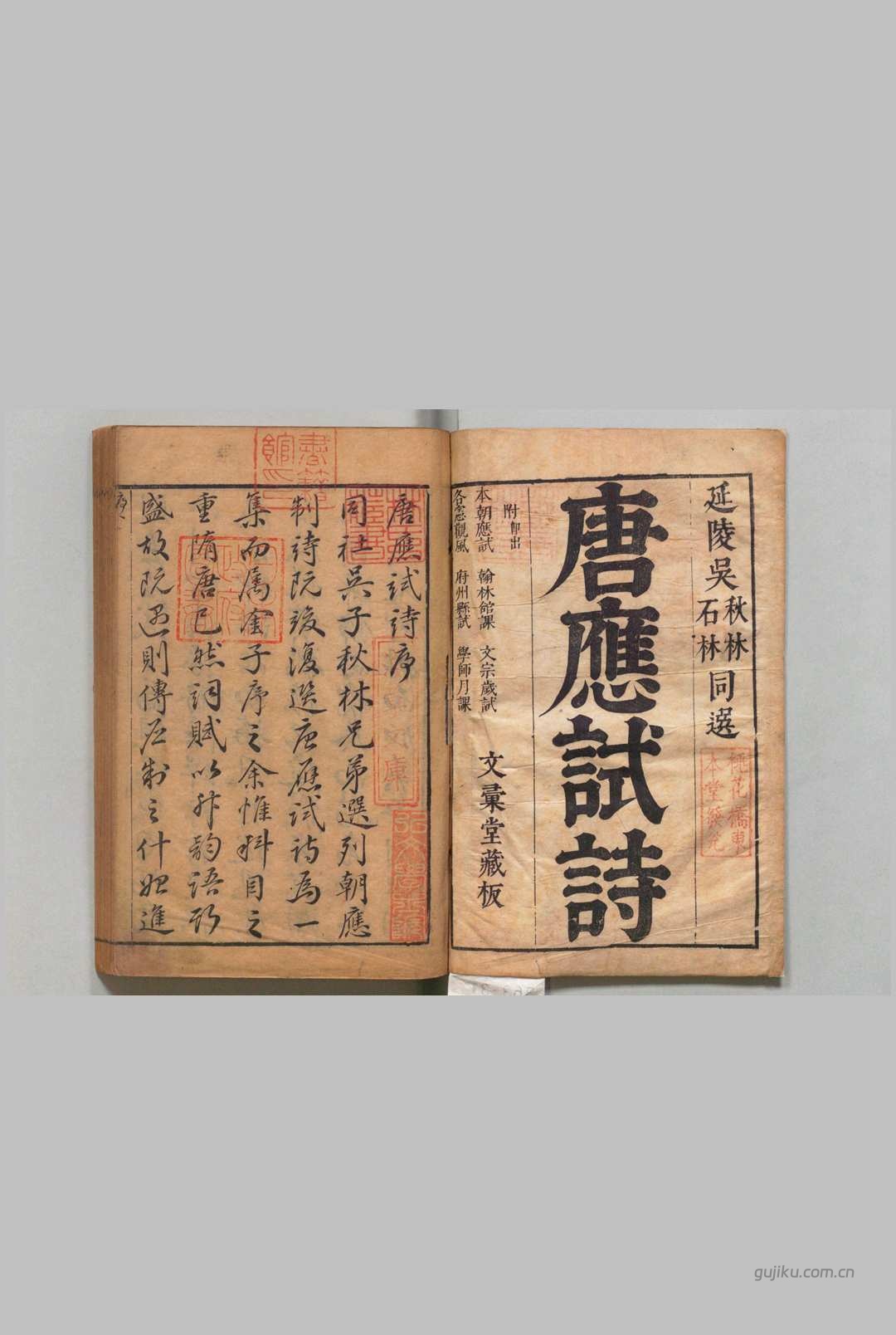 古籍库收录了《唐应试诗 3卷 吴汶 吴英,明末 , 文汇堂》这部重要的古籍文献文献。