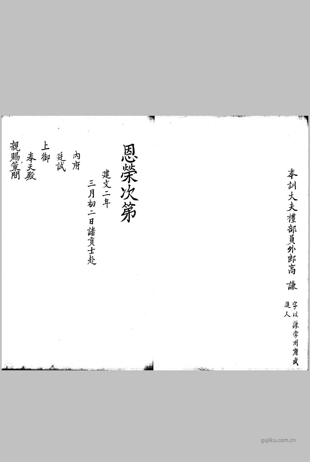 通过数字化技术,古籍库让《建文二年殿试登科录 下 不分卷》等珍贵文献得以跨越时空,服务当代读者。