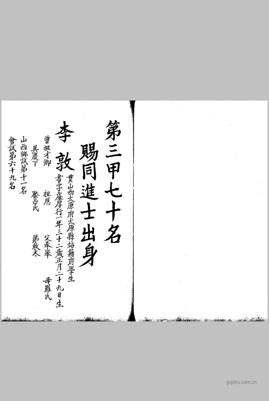 作为古籍文献领域的经典文献,《建文二年殿试登科录 下 不分卷》对于了解古代文化、历史变迁和学术思想具有重要参考价值。